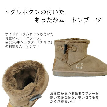 2020moz トグル付き ムートンブーツ ショートブーツ フラット ボア ロゴ刺繍 ブラック オーク M L LL 北欧 スウェーデン 温かい 屋外 クリスマスプレゼントに