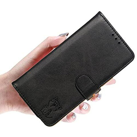 SUMSUNG Galaxy A41 ケース 手帳型 サムスン ギャラクシー A41 手帳ケース docomo SC-41A au SCV48 カバー 可愛い キャラクター 携帯ケース スマイル 笑顔猫ちゃん スマホケース 保護ケース 猫柄 動物 アニマル どうぶつ 柄 携帯カバー ブラック