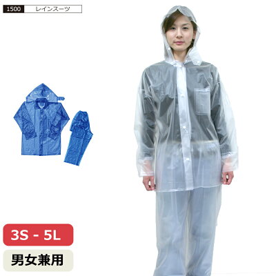 レインスーツ 透明 レインウェア 安い キャンプ アウトドア メンズ レディース 男女兼用 子供 合羽 PVC 使い捨て 簡易 透明 ビニール 防水 雨具 1500 レインスーツ