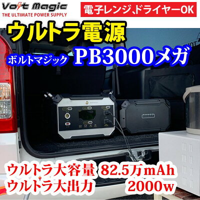 新発売 ポータブル電源 ボルトマジックPB3000メガ 【本体&サブバッテリーのお得なセット】 電子レンジ、ドライヤー、電動ドリルが動く超大容量(max2979Wh)ポータブルバッテリー インバータ2000W