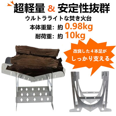 【P10倍&お得なクーポン有り】焚火台 バーベキューコンロ ファイアグリル アウトドアバーベキュー用 コンパクト 持ち運び便利 ソロキャンプ ブッシュクラフト 軽量 A4サイズ 組み立て式 折りたたみ アウトドア 組立簡単 ケース付 火吹き棒 送料無料