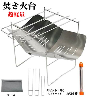 焚き火台 焚火台 バーベキューコンロ ファイアグリル 冬キャンプ コンパクト ソロキャンプ ブッシュクラフト 軽量 A4サイズ 組み立て式 折りたたみ アウトドア キャンプ ファイアースタンド キャンプ用品 組立簡単 ケース付 火吹き棒 送料無料