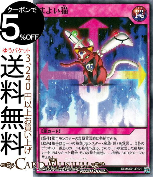 遊戯王ラッシュデュエル 「マキシマム超絶強化パック」(MAX1)収録 ■カード名:まよい猫 【通常罠】ノーマル ■【条件】相手モンスターの攻撃宣言時に発動できる。