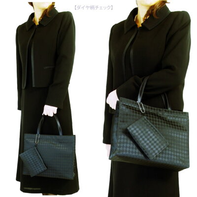 フォーマル サブバッグ サブトート 日本製 2点セット ソフトバッグ 多機能 数珠入ポーチ付 ダイヤ柄チェック レース 黒