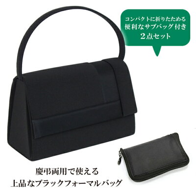 (バッグ レディース)(フォーマル レディース)(フォーマルバッグ)(フォーマルバッグ 黒)(冠婚葬祭 バッグ)(ブラックフォーマルバッグ)(お葬式 バッグ)フォーマルバッグ & サブバッグ 2点セット ビッグ角かぶせフォーマルバッグ ・ コンパクトに折りたためるサブバッグ付き 入学・卒業・結婚式、お葬儀・法要等、冠婚葬祭、慶弔両用で使える上品なブラックフォーマルバッグ。