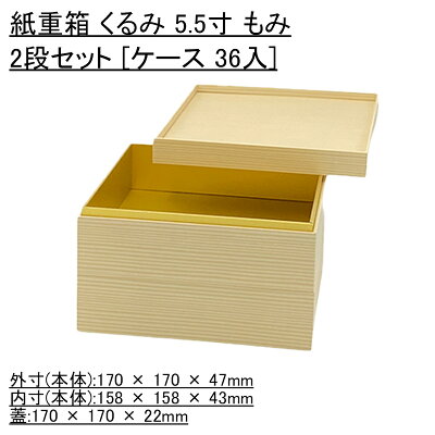 おせち容器 紙重箱 くるみ 5.5寸 もみ 2段セット [ケース 36入] 使い捨て 旅館 お正月 重箱 業務用 シンプル
