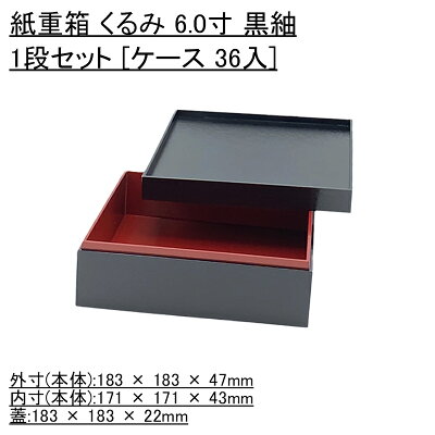 おせち容器 紙重箱 くるみ 6.0寸 黒紬 1段セット [ケース 36入] 使い捨て 旅館 お正月 重箱 業務用 シンプル